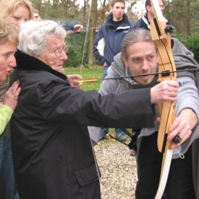 In ons fotoalbum: Boogschietworkshop op locatie in Wychen. Een veldje van 10 bij 10 is groot genoeg